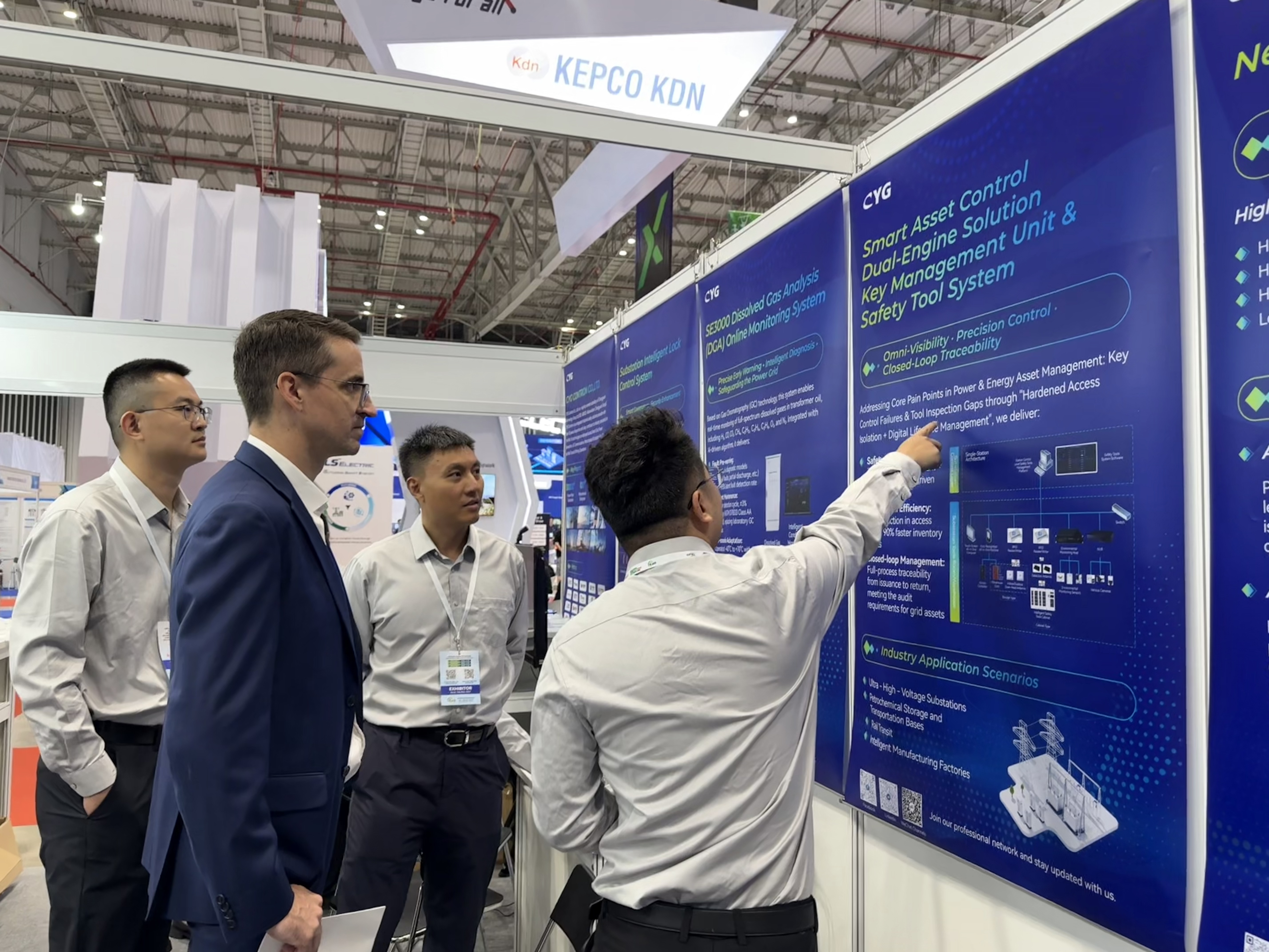 展會現場,長園重點展示網源友好協同、新能源智慧運檢、EPC與系統集成預制艙工程,以及覆蓋工商業與微網場景的儲能體系。通過AI預警、云端分析與區塊鏈碳鏈溯源等技術融合,助力客戶構建高效、可追溯的清潔能源體系。