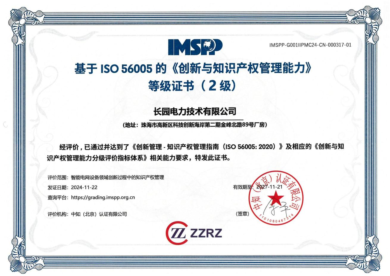 長園電力獲得珠海首批創新與知識產權管理能力體系二級認證
